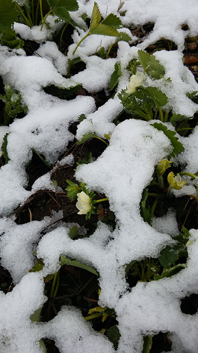 Ninsorile au coborât însă din zona montană spre localităţile de la poalele munţilor, la Polovragi ningând peste culturile de căpşuni, spre disperarea celor care se ocupă cu creşterea acestor plante. Oamenii şi-au văzut acum grădinile acoperite cu omăt de aproape o palmă, temerea lor cea mai mare fiind dată de faptul că până la începutul săptămânii viitoare, pe perioada nopţilor, sunt prognozate temperaturi negative. „A nins, din păcate, şi dacă până mai ieri toată plantaţia era albă de la flori, acum e albă de la zăpadă. Avem toată cultura sub stratul de omăt şi nu cred că vom mai putea salva ceva. Anul trecut am reuşit să scoatem o producţie de 4 tone, dar acum cred că nici pentru gust nu o să mai rămână, dacă vine gerul, aşa cum se aude. Sperăm să se îndrepte totuşi vremea şi să nu fie necazul atât de mare”, a spus Monica Nanu, unul dintre cultivatorii de căpşuni din Polovragi.