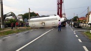 Situaţie greu de imaginat miercuri dimineaţa pe DN 66, ce face legătura între Târgu Jiu şi Rovinari, pe raza localităţii Iaşi de Gorj. Un camion încărcat cu 27 de tone de ciment neambalat, un cimentruc înmatriculat la noi în judeţ, s-a răsturnat pe ambele benzi ale şoselei, după ce din faţă i-a apărut brusc o altă maşină. Trei maşini au fost în total implicate în accident, dar, din fericire, nu a fost nimeni rănit grav, şoferul cimentrucului fiind considerat chiar un erou întrucât a reuşit să dirijeze camionul în aşa fel încât pagubele şi victimele să fie cât mai puţine.