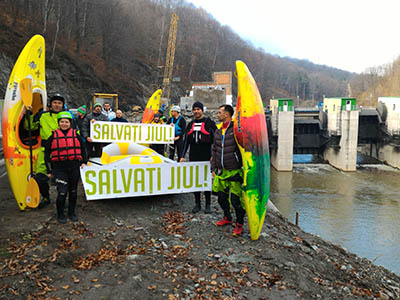 Tineri din mai multe judeţe ale ţării, practicanţi de rafting şi canoe, au protestat sâmbătă în Defileul Jiului împotriva hidrocentralei care se ridică aici şi care ar urma să reducă debitul râului foarte mult la finalul lucrărilor. Tocmai pentru că se tem că vor rămâne cu un râu sec şi cu un ecosistem complet dezechilibrat, tinerii strânşi aici au ţinut să îşi spună păsurile, în speranţa că autorităţile cu competenţe în acest domeniu vor reuşi să prevină inevitabilul. Ca la orice protest, au fost strigate lozinci de genul „Salvaţi Jiul” şi „Fără şantiere”, fiind afişate şi bannere cu aceleaşi mesaje.