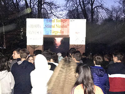 Adela Vlădoiu, organizatoarea spectacolului, a inclus în program şi o proiecţie de lasere, efectul luminilor fascinându-i în special pe cei mici. Nici adulţii care treceau prin Parcul Central la acel moment nu au rămas indiferenţi, show-ul fascinându-i şi pe aceştia. „Am vrut să facem un eveniment public de care să se bucure întreaga comunitate, nu doar tinerii, pentru a scoate în evidenţă portretele realizate de către elevi. De asta am şi realizat proiectarea lor pe Poarta Sărutului. Am dorit să sensibilizăm tinerii cu privire la istoria naţională şi să omagiem în acest fel cei 100 de ani scurşi de la Marea Unire. Cei mici au fost mai atraşi de jocurile de lasere şi de gulguţele cercetaşilor. Ne-am dorit să realizăm un proiect frumos şi cred că am reuşit. Pentru asta le mulţumesc tuturor partenerilor pe care i-am avut alături în acest proiect”, a spus Adela Vlădoiu.