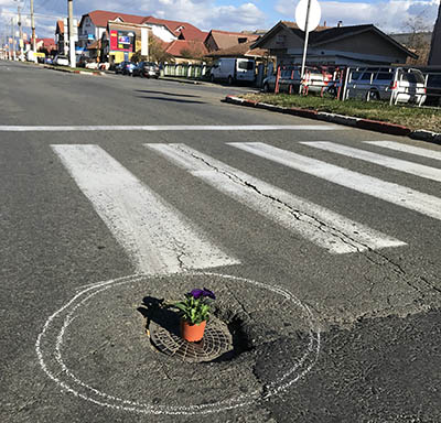 Flori în gropile din oraş, aşa a ales un şofer al Transloc să protesteze faţă de problemele pe care le întâmpină zi de zi pe străzile din municipiu. Vasile Brânzan, care este şi lider sindical la societatea de transport local, a venit ieri cu panseluţe în zona CAM pentru a le pune în gropile din carosabil. A ales această cale în speranţa că va reuşi să atragă atenţia autorităţilor asupra problemelor care contribuie la distrugerea parcului auto şi aşa învechit al Transloc. Brânzan spune că a sunat la Primărie cu mai bine de o săptămână în urmă şi a anunţat de cele două gropi la care a venit cu flori, dar nu s-a întâmplat nimic. Aşa a decis ca măcar să aducă panseluţe şi să încercuiască fiecare groapă cu câte o linie trasată cu creta, în speranţa că muncitorii vor şti mai bine unde să toarne asfalt atunci când vor decide să astupe gropile.