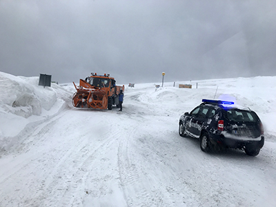 Greutăţile din trafic i-au făcut până şi pe jandarmii montani să apeleze la şenilata Secţiei Drumurilor Naţionale Târgu Jiu pentru a putea urca la Rânca. Echipa care a intrat în tura de după-amiază a fost nevoită să parcurgă porţiunea afectată de viscol cu utilajul special al drumarilor. La fel s-a întâmplat şi cu jandarmii care şi-au terminat tura, dar şi cu un bărbat care avea o rudă decedată la Novaci şi la care trebuia să ajungă neapărat. Toţi au fost transportaţi cu ajutorul şenilatei, la un moment dat şi aceasta rămânând împotmolită în mormanele de zăpadă. Zona rămâne până miercuri dimineaţa sub avertizare de cod galben de vreme rea, de abia după aceea fiind şanse de redeschidere a circulaţiei în condiţii optime de deplasare.