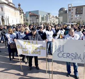 Peste 200 de membri ai Uniunii Sindicatelor Libere din Învăţământ Gorj au protestat timp de o oră în centrul municipiului Târgu Jiu. Nemulţumiţi că Ministerul Educaţiei nu plăteşte aceleaşi sporuri tuturor angajaţilor săi, dar şi pentru că vine cu propuneri de reformare a sistemului de învăţământ cu care dascălii nu sunt de acord, sindicaliştii au ţinut să le transmită guvernanţilor un mesaj ferm pe această temă. Protestatarii consideră un abuz decizia ministerului de a trece 35% din învăţământ la clasele profesionale, desfiinţate cu ani în urmă tot „peste noapte”, aşa cum se vor reînfiinţate acum. Dar sporurile pe care unii angajaţi din sistem le primesc, iar cei care nu sunt consideraţi personal didactic nu le încasează sunt durerea cea mai mare a acestora.