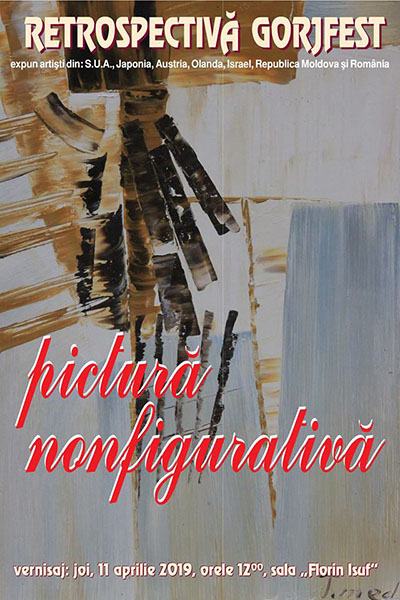 O expoziţie de picturi nonfigurative realizate de artiştii prezenţi în cele 29 de ediţii ale GORJFEST va fi vernisată joi 11 aprilie 2019 în sala „Florin Isuf” a Centrului Judeţean pentru Conservarea şi Promovarea Culturii Tradiţionale Gorj. Curatorul expoziţiei Teodor Dădălău a adunat cele mai frumoase şi interesante lucrări într-o expoziţie din aproape 40 de pânze. Cele mai multe lucrări reflectă o maturitate artistică, o trecere de la realism la abstracţionism.