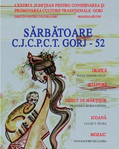 Centrul Judeţean pentru Conservarea şi Promovarea Culturii Tradiţionale Gorj aniversează aşadar săptămâna aceasta 52 de ani de la înfiinţare. Cu acest prilej, vineri, 28 februarie 2020, începând cu ora 11.00, la sediul instituţiei, va avea loc vernisarea expoziţiei de grafică semnată de Ioana-Teodora Duţă, expoziţiei de sculptură semnată de Traian Duţă, expoziţiei de icoane a colegilor de la C.J.C.P.T Vîlcea, expoziţiei de mozaic semnată de Ivan Kanchev din Bulgaria şi o expoziţie “Debut de mărţişor” semnată de Francesca-Maria Laigner, o elevă din comuna Bâlteni.