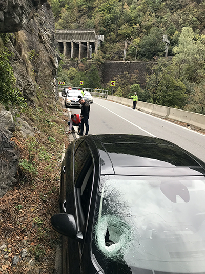 De clipe de groază a avut parte un târgujian şi soţia sa care marţi seara se întorceau de la Cluj spre casă. La câţiva kilometri după ce au intrat pe raza administrativă a judeţului Gorj, în Defileul Jiului, soţii Medinţu au trăit un moment de cumpănă pe care nu îl vor uita prea curând. O bucată de stâncă s-a desprins de pe versant, a căzut pe parbriz şi a rănit-o pe femeie. Totul se întâmpla spre seară, când lumina zilei era mai slabă şi, evident, că nimeni nu se aştepta la aşa ceva.