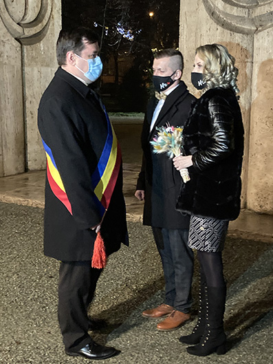 Un singur cuplu, din Târgu Jiu, şi-a unit destinele în noaptea de Revelion la Poarta Sărutului, acolo unde primarul Marcel Romanescu a oficiat ceremonia. Aici veneau în alţi ani şi 20 de perechi de îndrăgostiţi imediat după focurile de artificii de la miezul nopţii, însă acum doar doi tineri au avut şansa să spună DA în faţa ofiţerului de stare civilă. Totul s-a petrecut în condiţii atipice, ţinând cont că mirii au venit singuri, fără rude sau prieteni, şi au trebuit să mai poarte şi mască de protecţie. Atunci când au fost declaraţi oficial căsătoriţi, primarul Marcel Romanescu chiar le-a menţionat că pot să îşi dea măştile jos pentru câteva clipe şi să se sărute pentru a marca momentul. În spatele măştilor cei doi de abia şi-au stăpânit emoţiile, mai ales că vor ca de această noapte să îşi amintească pentru tot restul vieţii. Prima lor întâlnire s-a consumat la Poarta Sărutului în urmă cu circa 7 luni şi de aceea au ales şi acum să îşi unească destinele aici. „Ideea acestei căsătorii a fost a amândorura pentru că aici ne-am cunoscut noi pentru prima dată şi de asta am şi optat pentru chestia asta, ca să rămână pentru noi pe viaţă. E un lucru frumos şi dacă am început pe drumul acesta vrem să mergem aşa în continuare”, a spus Mădălin Ştefan. Proaspăta sa soţie a dezvăluit că planul căsătoriei în noaptea de Revelion l-au gândit încă din toamnă, când au decis să îşi unească destinele şi să facă nunta în cursul lui 2022. „De câteva luni ne-am gândit la treaba asta, cu toate că a fost un an dificil pentru toată lumea. Noi am vrut să rămână o amintire frumoasă pentru că pentru noi acest an chiar a fost unul frumos. Chiar dacă suntem aici fără rude, cu mască, cu distanţare, tot ce s-a cerut, a fost un pic mai greu, dar ne-am conformat pentru a putea face acest pas important din viaţa noastră”, a spus şi Loredana Ştefan. Mirii şi-ar fi dorit să aibă rudele şi prietenii aproape, dar au trebuit să se mulţumească cu doi angajaţi de la Evidenţa Populaţiei pe post de martori ai căsătoriei. Municipalitatea a avut mai multe solicitări pentru oficierea de căsătorii în noaptea de Revelion, dar din cauza pandemiei şi a regulilor sanitare şi de distanţare socială doar soţii Ştefan au avut bafta să poată fi „admişi”. Marcel Romanescu crede că anul acesta, dacă se vor relua nunţile din primăvară o mare parte din timp va fi doar ofiţer de stare civilă pentru că sunt multe evenimente de acest gen amânate din cauza pandemiei. „Mă bucur să văd că am putut păstra tradiţia la Târgu Jiu, iar cei care au dorit să se cunune la Poarta Sărutului sunt târgujieni. Ne dorim să păstrăm această tradiţie. Ne dorim să trecem peste această perioadă nefastă şi, de la anul, vom ajunge la numărul mediu de căsătorii, 10-15, aşa cum am avut în fiecare an la Poarta Sărutului. Au fost foarte multe cupluri interesate. Din păcate, această restricţie cu ora 23 la care trebuiau să părăsească domeniul public a făcut în aşa fel încât să nu se deplaseze din localităţile de unde doreau să rămână la Târgu Jiu. În 2021, vom avea cununii la Poarta Sărutului în număr mult mai mare”, a menţionat edilul. La finalul ceremoniei deasupra Porţii Sărutului şi-a făcut apariţia şi o lună plină ivită de printre norii care până atunci se scuturaseră inclusiv cu tunete şi fulgere deasupra oraşului.