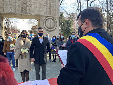 După mulţi ani în care nimeni nu s-a mai căsătorit la Poarta Sărutului cu ocazia sărbătorii iubirii pe model occidental, ieri a fost ziua în care un judecător al Tribunalului Bucureşti şi-a unit destinele cu aleasa inimii sale, o avocată de loc din capitală. Mirele este născut şi crescut la Târgu Jiu, iar acum şi el şi iubita sa au profitat din plin pentru a avea o cununie aşa cum şi-au dorit. Chiar dacă a fost frig afară, vremea însorită şi faptul că au putut să întemeieze o familie în plină pandemie le-au făcut ziua de neuitat. Florin Vâlceanu şi Nicoleta Vâlceanu s-au cunoscut în urmă cu aproximativ doi ani. Mirele a mărturisit că a văzut o poză a acesteia la o prietenă, după care au reuşit să se întâlnească. Relaţia lor s-a consolidat în vremea pandemiei, mărturisesc cei doi, când s-au convins că pot forma un cuplu dacă au reuşit să stea două luni închişi în casă, la finalul stării de urgenţă constatând că le este bine împreună. „Am văzut-o într-o poză a unei prietene de-a ei, mi-a plăcut şi aşa ne-am cunoscut. La un moment dat am venit şi la Poarta Sărutului şi acum ne-a plăcut foarte mult ideea de a ne oficia căsătoria aici. Eu sunt născut aici, crescut aici, Târgu Jiu e oraşul meu de origine, iar Parcul Central e locul meu preferat din oraş. Operele marelui sculptor m-au inspirat întotdeauna, iar aici am găsit mereu un loc de linişte. De doi ani suntem împreună, iar în cele două luni de stare de urgenţă dacă am văzut că am reuşit să convieţuim în casă, a fost ultimul test, aşa ne-am hotărât să ne căsătorim”, a spus mirele. La rândul său, mireasa a mărturisit că nu a contat frigul de afară atâta timp cât a pornit pe un drum nou în viaţă alături de persoana iubită, într-un loc deosebit. „Ne bucurăm că am avut drept martori operele marelui maestru Brâncuşi şi sper ca toată viaţa să ne fie ghidată de valori importante precum tăcerea, răbdarea şi dragostea dusă la infinit. În ceea ce priveşte frigul, când dragostea e mare, iubirea ţine de cald şi asta e tot ceea ce contează”, a spus şi mireasa. Alături de cei doi îndrăgostiţi au fost prieteni de-ai acestora, nu doar din Târgu Jiu, ci din capitală, unii dintre ei veniţi pentru prima dată la Poarta Sărutului şi mai ales într-o astfel de zi. „Pentru noi a fost destul de surprinzător pentru că la ei totul a fost mai rapid. Noi am stat mai mult până ne-am decis să ne căsătorim. Important este însă că se iubesc. Nu a mai contat nici pandemia, nici nimic, iar pentru noi a fost frumos pentru că am ajuns pentru prima dată la Târgu Jiu şi mai ales cu ocazia Sfântului Valentin. Am venit cu o zi înainte în oraş, am vizitat parcul şi, normal, ne-am sărutat şi noi aici”, a spus un cuplu venit din capitală. Ceremonia de căsătorie a fost oficiată de primarul Marcel Romanescu, edilul menţionând că a avut puţine evenimente de acest gen de oficiat în perioada pandemiei. „Numărul căsătoriilor nu a fost nici măcar la jumătate faţă de anii precedenţi, dar sperăm ca măcar în 2021 să revenim la normalitate. Nemaiputând organiza astfel de evenimente la restaurantele din Târgu Jiu cuplurile nu şi-au mai oficiat nici căsătoriile în numărul obişnuit din anii anteriori”, a explicat edilul, care a menţionat că, dacă de Dragobete va exista interes, va oficia căsătorii şi pe 24 februarie.