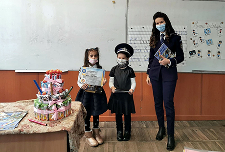Aflând de la părinţii sărbătoritelor că cele două fetiţe şi-ar dori să devină poliţiste când vor creşte, ne-am decis să le vizităm la şcoala unde învaţă şi să le transmitem urări de ”La mulţi ani!”, dar şi informaţii utile despre munca pe care o desfăşoară un poliţist. Sărbătoritele au primit în dar un ”Certificat de poliţişti junior”, care să marcheze ziua lor de naştere, iar tuturor elevilor le-au fost distribuite reviste cuprinzând activităţile reprezentative ale Poliţiei Române. Au fost momente memorabile pentru tot colectivul clasei I, care le-a mulţumit călduros poliţiştilor pentru surpriza făcută. Mulţi dintre elevi au promis că îi vor răsplăti pe poliţişti, la rândul lor, prin faptul că li se vor alătura în lupta contra infracţionalităţii, atunci când vor creşte mari. Cu ocazia zilei de naştere, le urăm sărbătoritelor un călduros ”La mulţi ani!” şi le dorim o viaţă îmbelşugată cu sănătate şi împliniri pe toate planurile.
